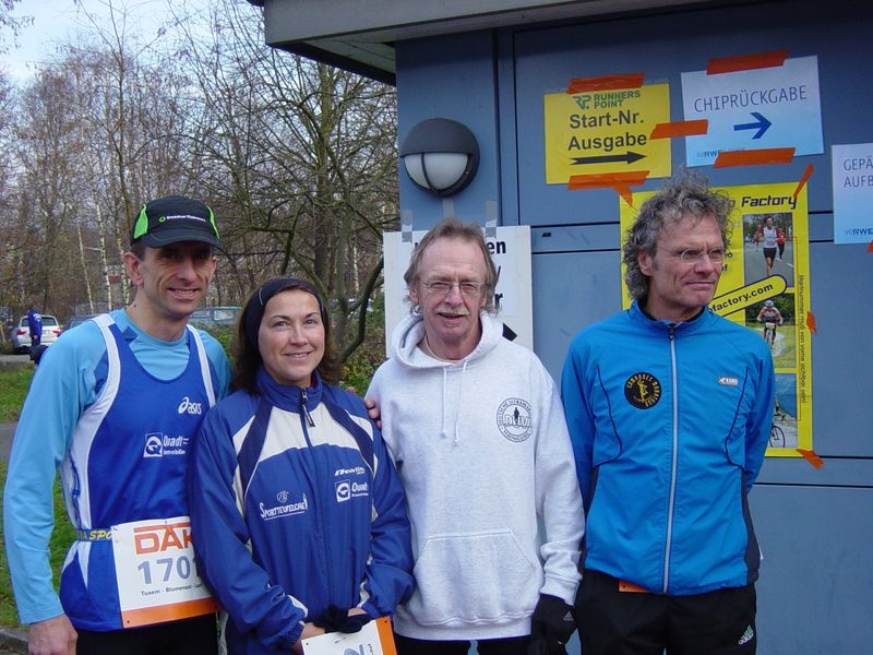 Unser Verein, die LLG St. Augustin, war in diesem Jahr mit 4 Startern vertreten: Antje, Karl-Heinz, Gerd und Olaf. Wir trafen uns in der Sporthalle ca. 1 h vor dem Start. Nachdem wir uns rund um die Sporthalle schon etwas warmgelaufen hatten, gingen wir rechtzeitig zum Start, um nicht zu weit hinten im Feld zu stehen. Nachdem die letzten Läufer des um 12:45 Uhr gestarteten 10-km Laufes im Ziel waren, startete pünktlich um 14:05 der Halbmarathon.
